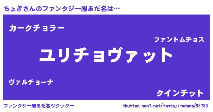 | ヒーロー風カッコイイあだ名 | 『愛の使者ちょぎ』『幻影騎士チョ』 |