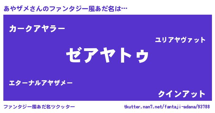 | 伝説のあだ名 | 『人々から恐れられる占い師あやザメ』 |