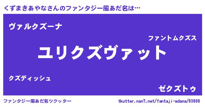 | 女子向けラノベタイトル風あだ名 | 『くずまきあやなの玉の輿計画!』 |