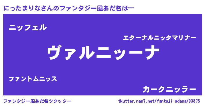 | 意味不明あだ名 | 『住所不定無職にったまりな(95歳)』 |