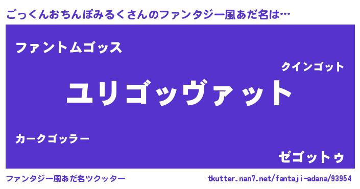 | 欧米人風あだ名 | 『トリンドルごっくんおちんぽみるく』 |