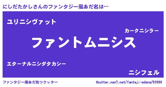 | ポケモン風あだ名 | 『ヒニシダタカシ』『ニシキング』 |