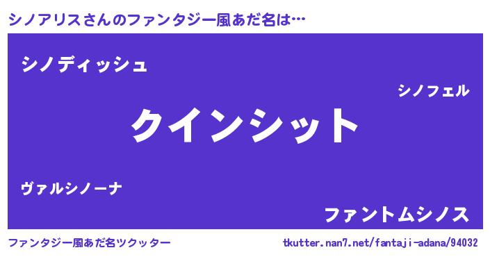 | 女子向けラノベタイトル風あだ名 | 『シノアリス夫妻のなれそめ』 |
