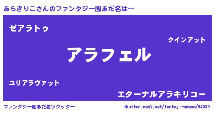 | ポケモン風あだ名 | 『アラチュウ』『アラセウス』 |