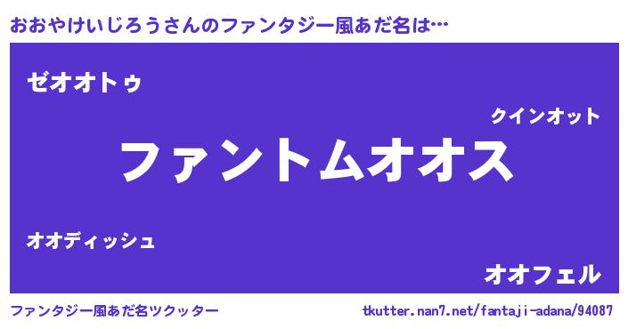 | 男性向けラノベタイトル風あだ名 | 『おおやけいじろうの嫁は女の子じゃないと思った?』 |