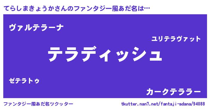 | ヘコむあだ名 | 『てらしまきょうか(遠い目)』『てらふぇ~』 |