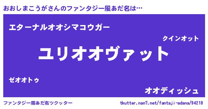 | 男性向けラノベタイトル風あだ名 | 『オオシマコウガスレイヤー』 |