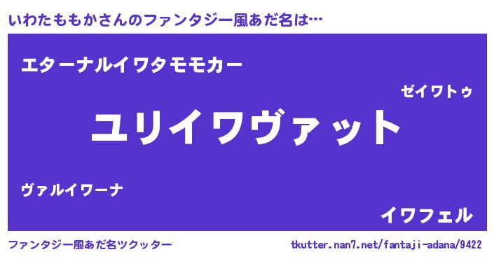 | 男性向けラノベタイトル風あだ名 | 『イワタモモカスレイヤー』 |