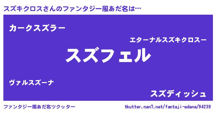 | 男性向けラノベタイトル風あだ名 | 『スズキクロスの憂鬱』 |