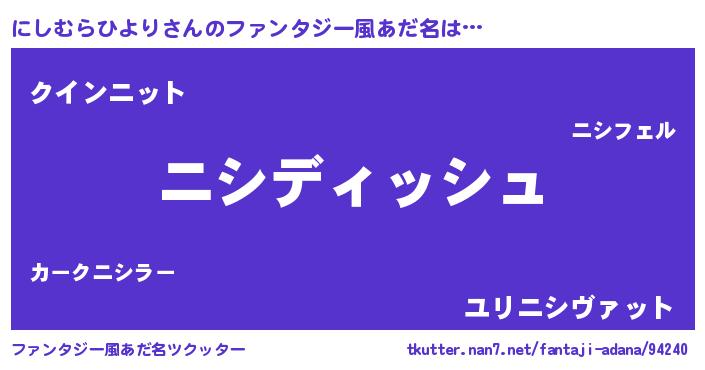 | 意味不明あだ名 | 『永久保存にしむらひより』 |