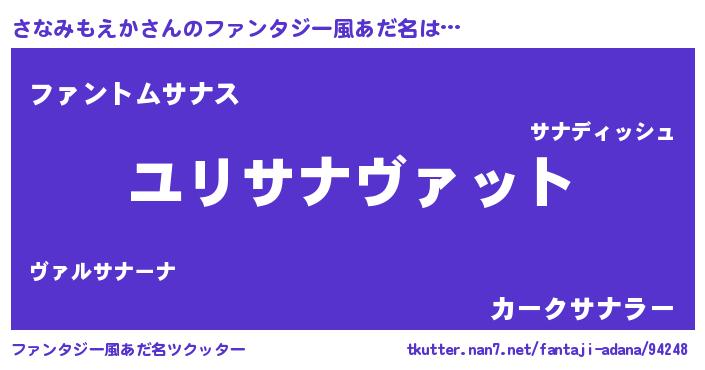 | 男性向けラノベタイトル風あだ名 | 『転生したらさなみもえかだった件』 |