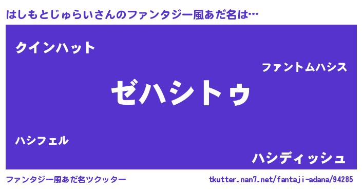 | 男性向けラノベタイトル風あだ名 | 『Re:はしもとじゅらいから始める異世界生活』 |