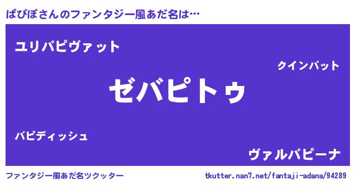 | 男性向けラノベタイトル風あだ名 | 『Re:ばぴぽから始める異世界生活』 |