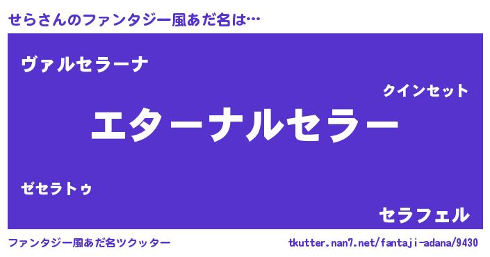 | 女子向けラノベタイトル風あだ名 | 『せらの雑貨屋さん』『死神せらの再婚』 |