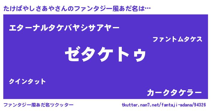 | 意味不明あだ名 | 『自称たけばやしさあや』 |