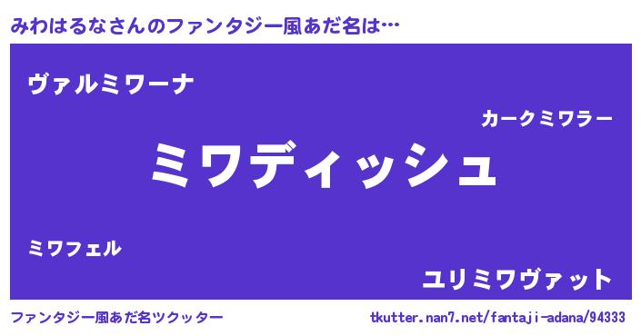 | 男性向けラノベタイトル風あだ名 | 『みわはるなという概念が存在しない退屈な世界 』 |