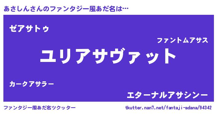 | ヒーロー風カッコイイあだ名 | 『ウルトラ戦士アサシン』『幻影騎士アサ』 |