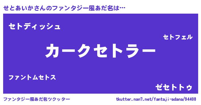 | 意味不明あだ名 | 『永久保存せとあいか』『自称せとあいか』 |