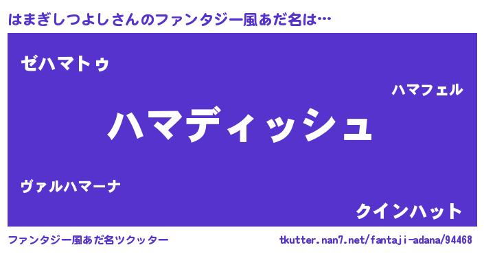 | ヘコむあだ名 | 『はまぎしつよし(笑)』『はまっふぃ~』 |