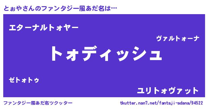 | 男性向けラノベタイトル風あだ名 | 『とぉやに滅ぼされるだけの簡単なお仕事です』 |