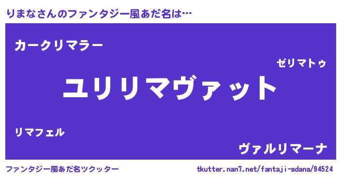 | 男性向けラノベタイトル風あだ名 | 『転生したらりまなだった件』 |