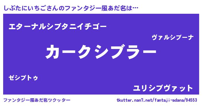 | 男性向けラノベタイトル風あだ名 | 『うちのしぶたにいちごが世界を掌握している!』 |