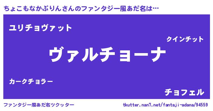 | 女子向けラノベタイトル風あだ名 | 『乙女ゲームの破滅フラグしかない悪役ちょこもなかぷりんに転生してしまった…』 |