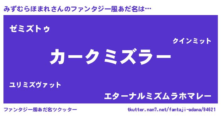 | ヒーロー風カッコイイあだ名 | 『最強戦士ミズムラホマレ』 |