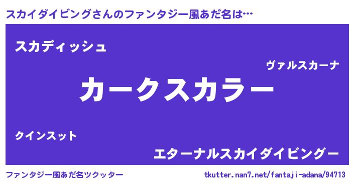 | 男性向けラノベタイトル風あだ名 | 『緋弾のスカイダイビング』 |