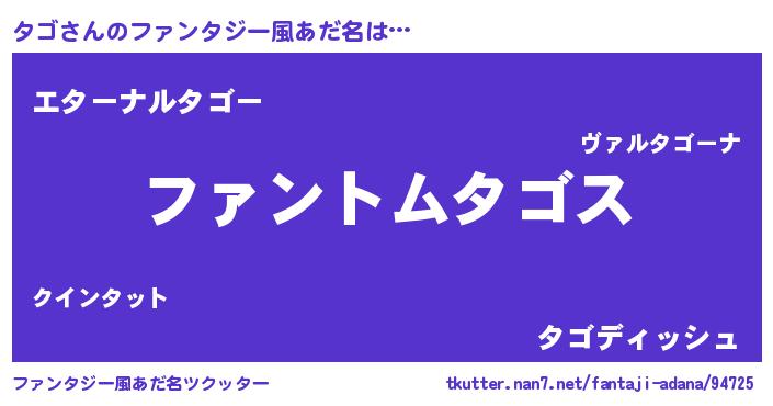 | ポケモン風あだ名 | 『ヒタゴ』『タゴゴンZ』『タゴダネ』 |