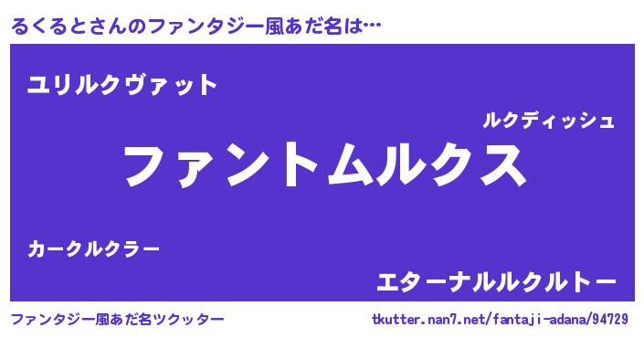 | 男性向けラノベタイトル風あだ名 | 『ダンジョンにるくるとを求めるのは間違っているだろうか』 |