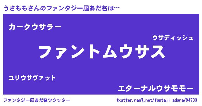 | ヒーロー風カッコイイあだ名 | 『魔戒騎士ウサ』『ウルトラうさももマン』 |