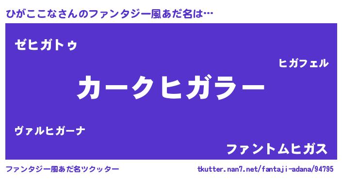 | 男性向けラノベタイトル風あだ名 | 『緋弾のヒガココナ』『ひがここなの憂鬱』 |