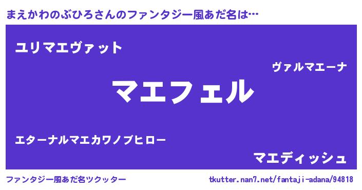 | 男性向けラノベタイトル風あだ名 | 『まえかわのぶひろの憂鬱』 |