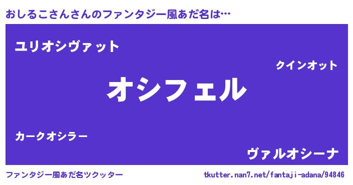 | ヒーロー風カッコイイあだ名 | 『スーパーオシルコサン』『仮面オシダー』 |