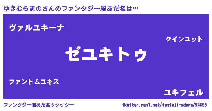 ゆきむらまのさんのファンタジー風あだ名をツクッター!