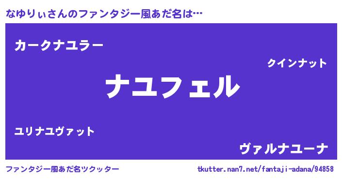 | 男性向けラノベタイトル風あだ名 | 『なゆりぃの憂鬱』 |