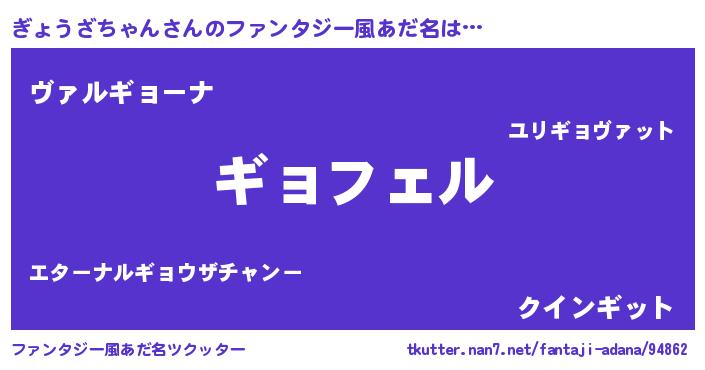 | 女子向けラノベタイトル風あだ名 | 『ぎょうざちゃん姫と円卓の騎士』 |