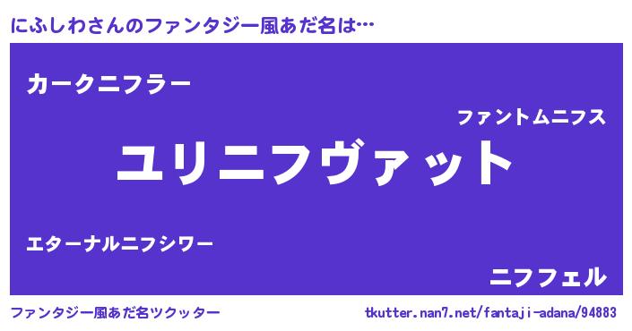 | 男性向けラノベタイトル風あだ名 | 『ニフシワスレイヤー』『にふしわの憂鬱』 |