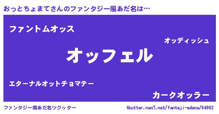 | 男性向けラノベタイトル風あだ名 | 『オットチョマテアートオンライン』 |