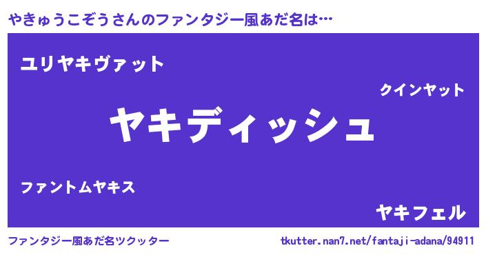 | ポケモン風あだ名 | 『ヤキゴンZ』『ゼニヤキ』 |