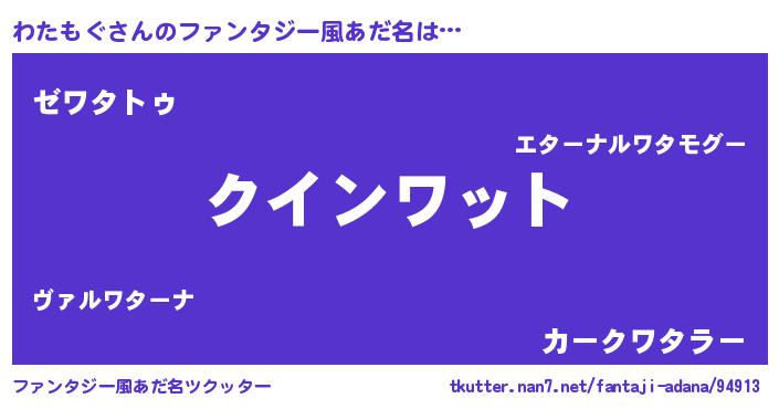 | 男性向けラノベタイトル風あだ名 | 『おまえをオタクにしてやるから、俺をわたもぐにしてくれ! 』 |