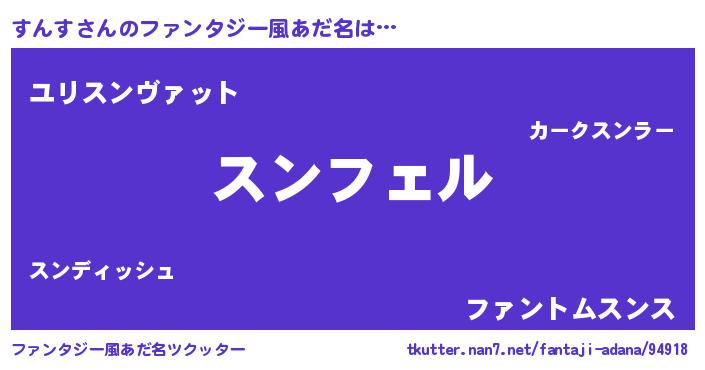 | 男性向けラノベタイトル風あだ名 | 『すんすの憂鬱』『スンススレイヤー』 |