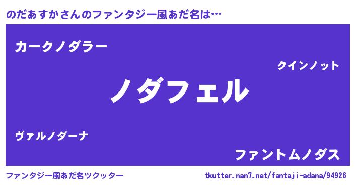 | 男性向けラノベタイトル風あだ名 | 『ノダアスカアートオンライン』 |