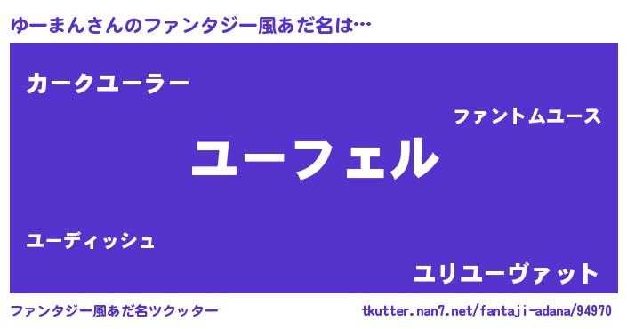| ヒーロー風カッコイイあだ名 | 『スーパーユーマン』『幻影騎士ユー』 |