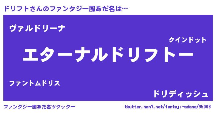 | 女子向けラノベタイトル風あだ名 | 『ドリフト伯爵の花嫁』 |