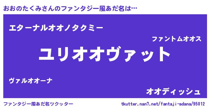| 男性向けラノベタイトル風あだ名 | 『おおのたくみ~年齢イコール彼女いない歴の魔法使い~』 |
