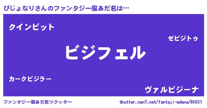 | ヘコむあだ名 | 『びじっふぃ~』『びじょなり(笑)』 |