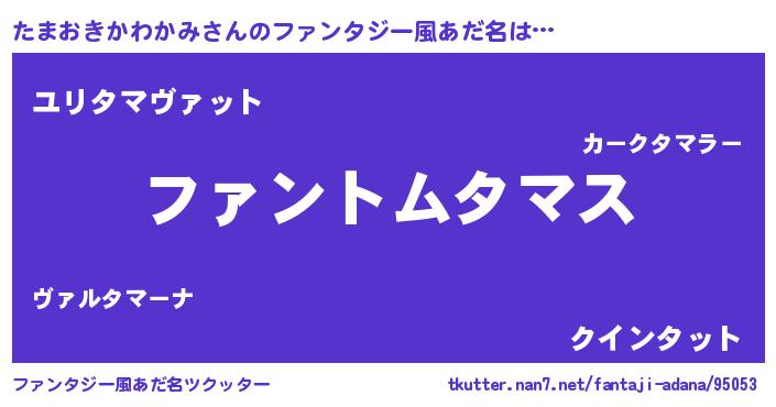 | 女子向けラノベタイトル風あだ名 | 『たまおきかわかみは平凡を望む』 |