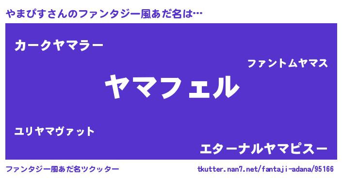 | 男性向けラノベタイトル風あだ名 | 『ヤマピスアートオンライン』 |